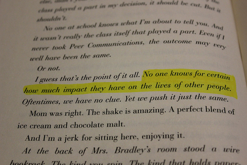 “Which is why you should treat each person you meet tenderly. For you never know how a simple word you say can save a life, or heal a broken heart.”
